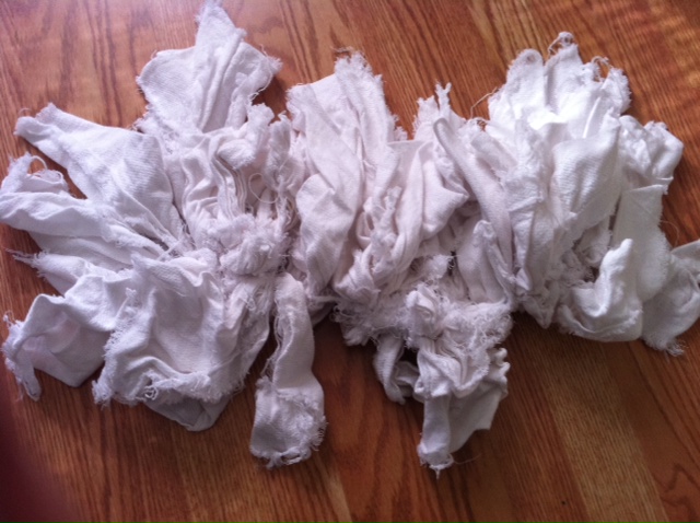 I just went out and bought a pack of 20 wash-clothes for $2 at Walmart (yes, I know getting them at Walmart sort of negates any do-gooderness about them, but still), and so I really don’t mind using them for anything and everything. I also tear up old t-shirts, but I’ve noticed they don’t stay together quite as well as the wash-cloths, so those are mostly for cleaning really gross things and then tossing out.