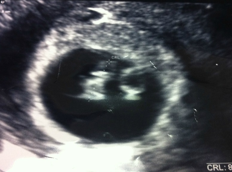 Yup. That there’s a baby, unofficially known as Tater. Okay, so it’s actually a uterus holding a baby, which is the thing on the left. Well, we’ve been told it’s a baby. I’m holding out for a pony. Tater was only six weeks along right there, which is why she looks like a seahorse. Which is almost like a pony, but not.