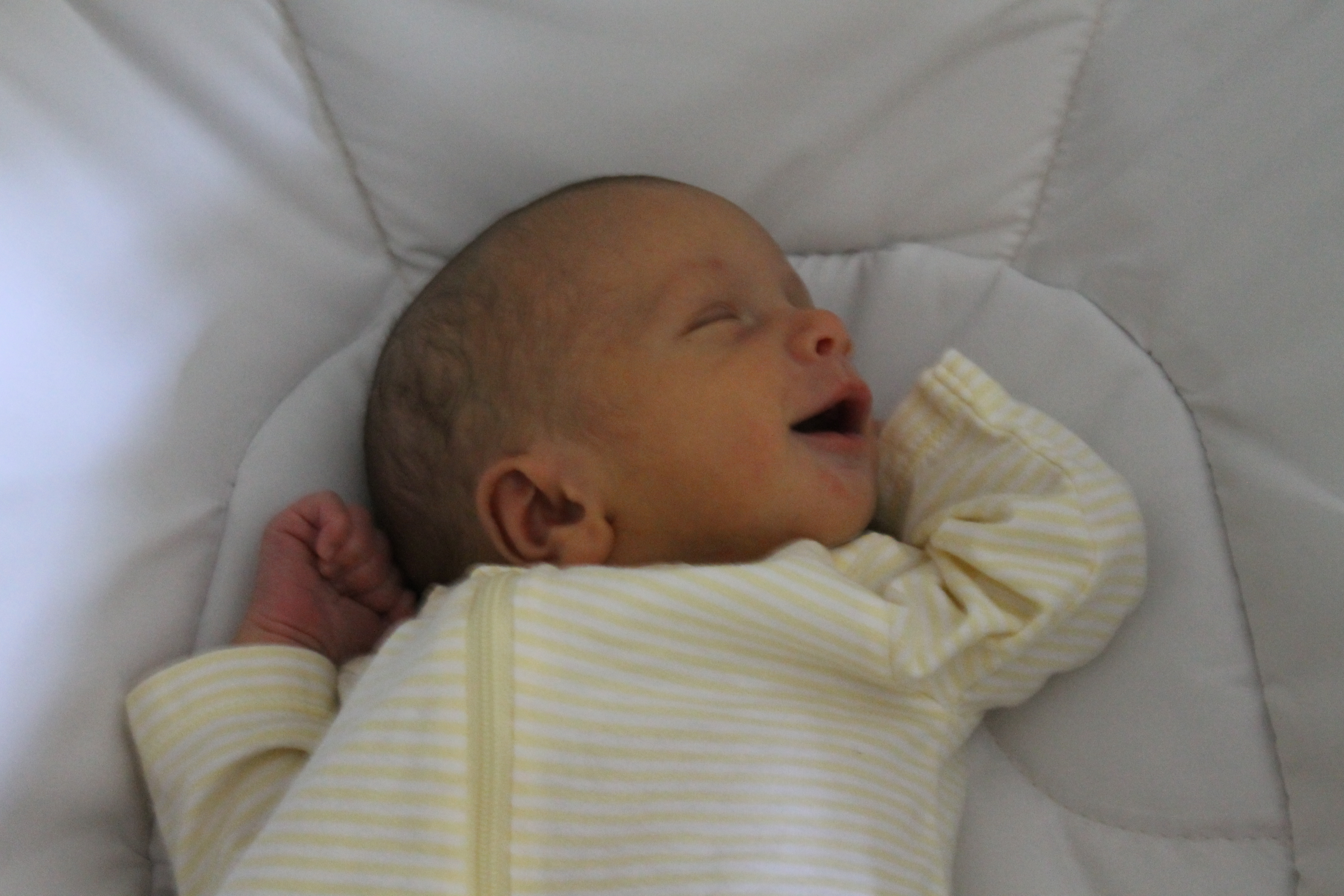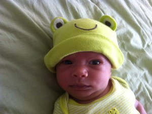 There are even better pictures from Brandi Thompson (our wedding photographer!); he’s photos 25 through 28 in her Newborn sessions album on Facebook.  (Brandi is amazing, you should “like” her Facebook page to get updates and check out her blog, especially the What to Wear posts!)
